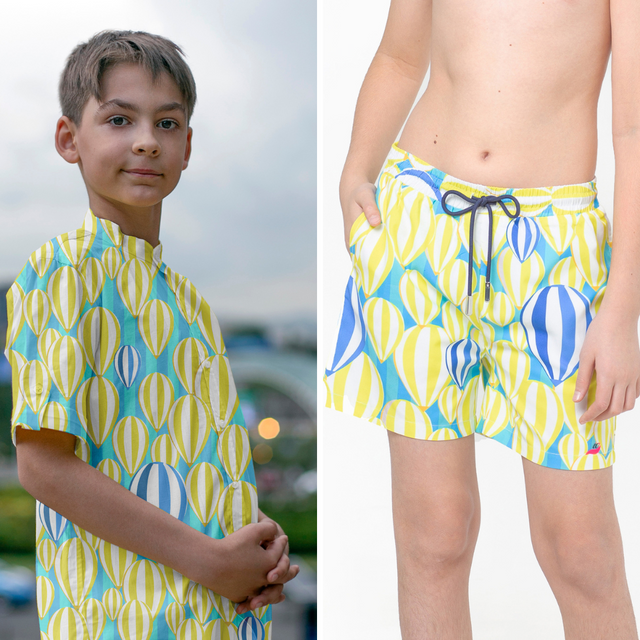 Tropic Classique Co-ord Set (Blue and Yellow Hot air Balloon)