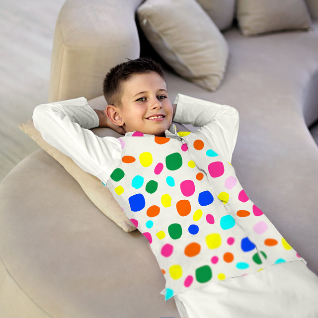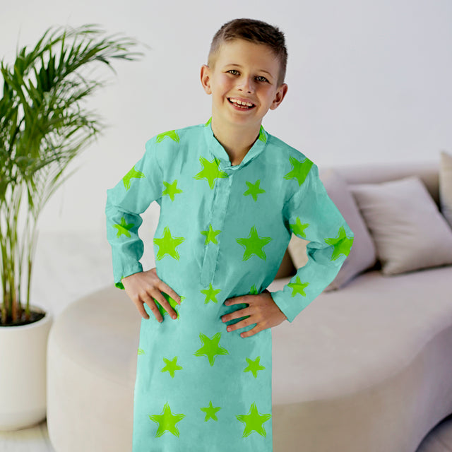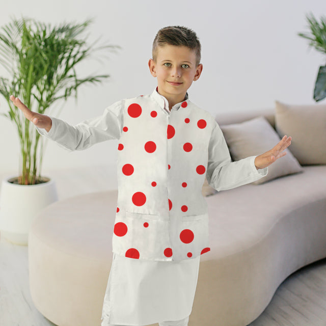 Imperial Kurta and Pajama Set - White Polka Dots and Blue Raindrops