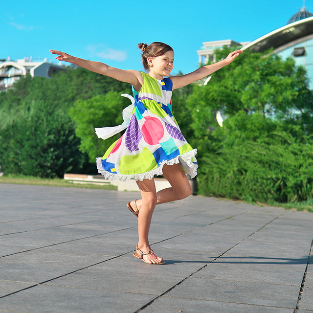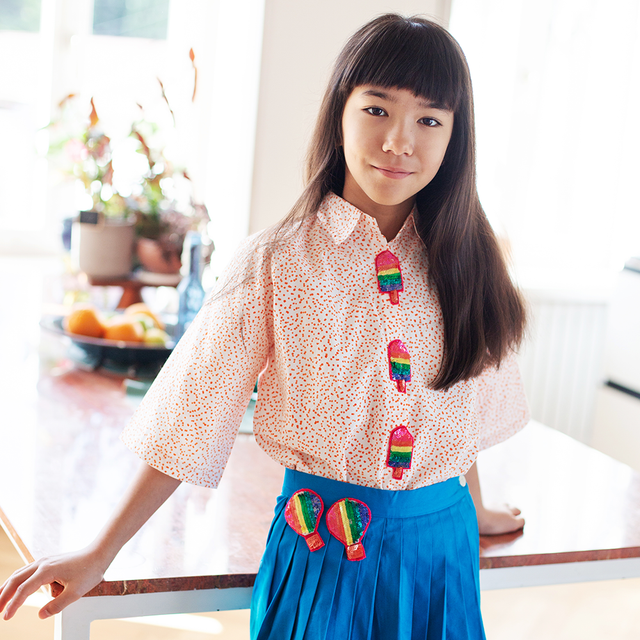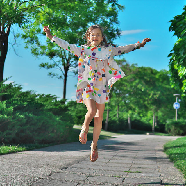 Gulaabo Lehenga with Puffy Sleeves - Fuchsia and Aqua Polka Dots