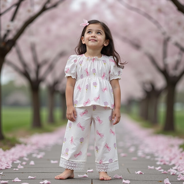 Raat Ki Rani Collared Anarkali - Pink with Aqua Polka Dots