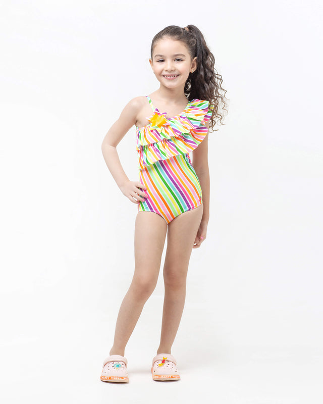 Multicolored Pinstripes Tropical Squeeze Maillots