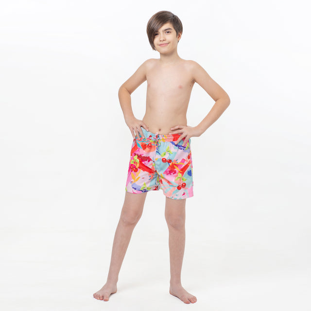 Multicolored Splashes and Cherries, Red Stripes Reversible Flipout Shorts