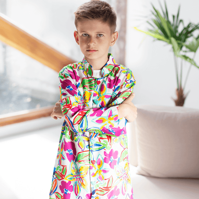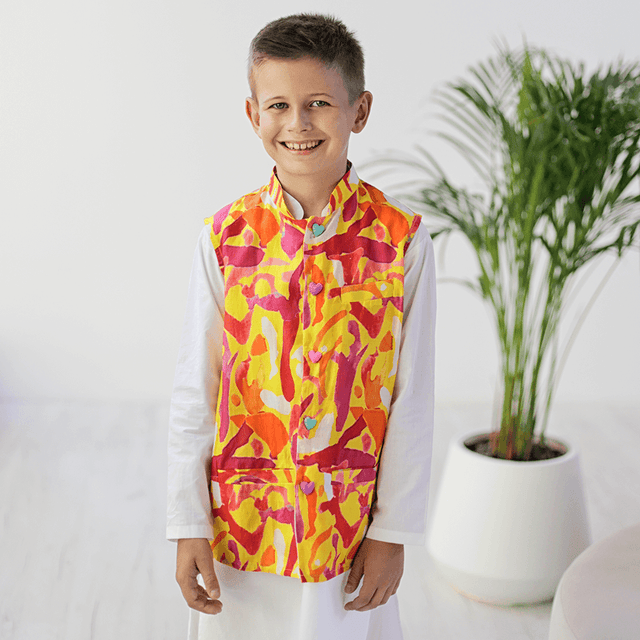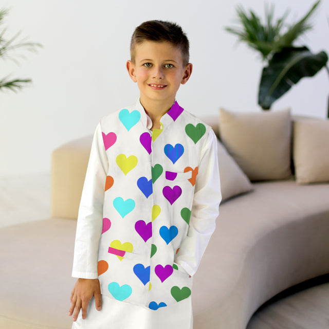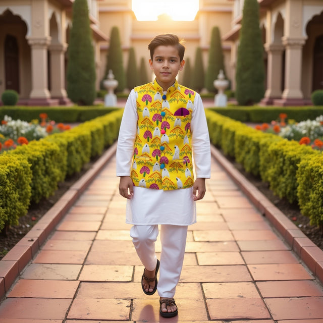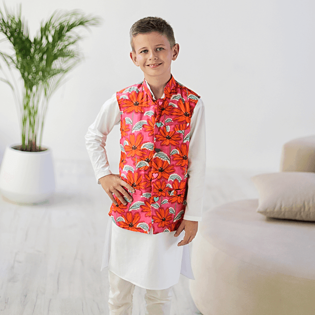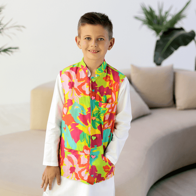 Maharaja Waistcoat - White and multi-coloured morning glory