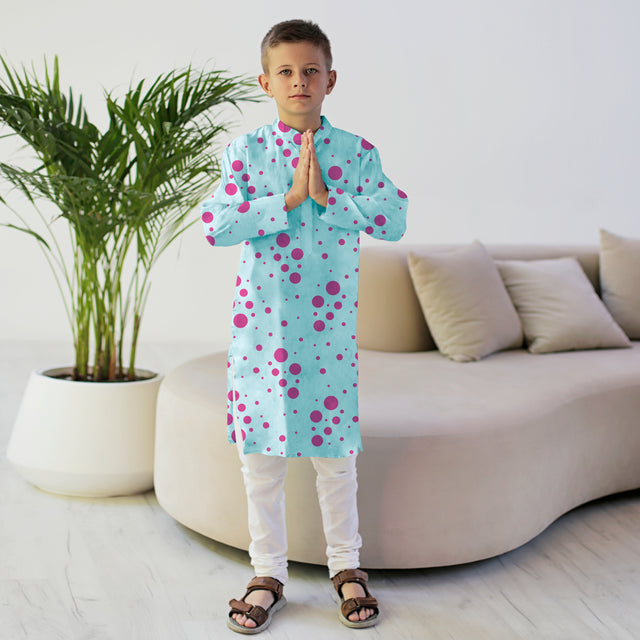 Imperial Kurta and Pajama Set - Fuchsia and Aqua Polka Dots