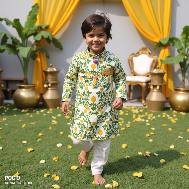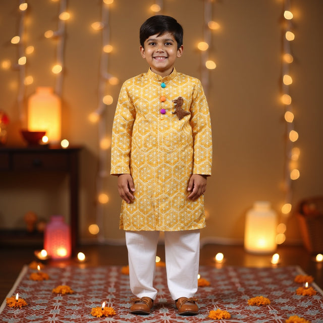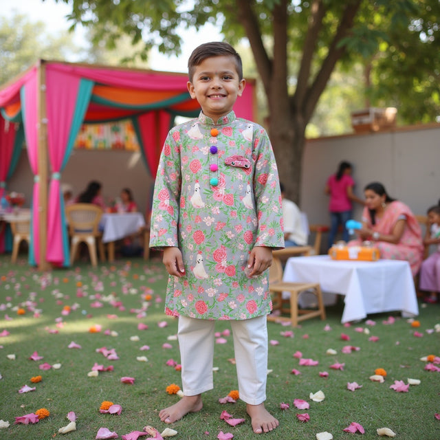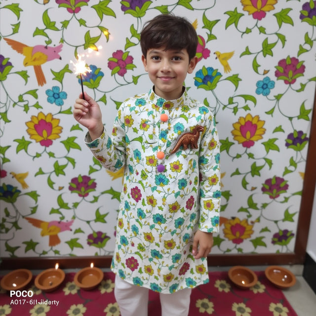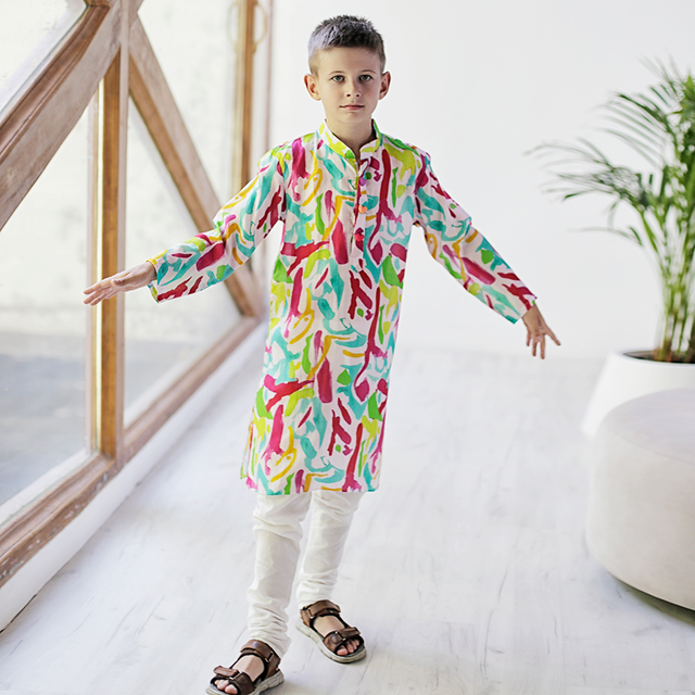Imperial Kurta and Pajama Set - Multi-coloured splashes