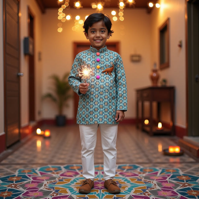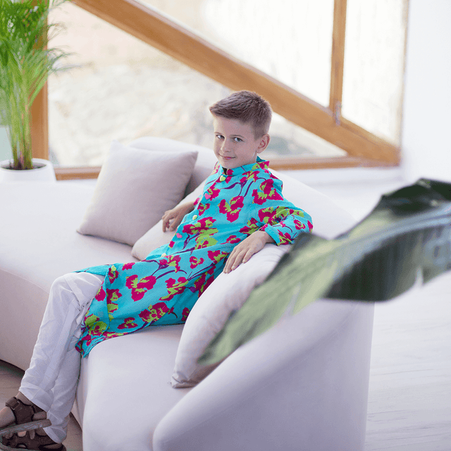 Sultan 2-Piece Sherwani Set - Turquoise and pink petunia