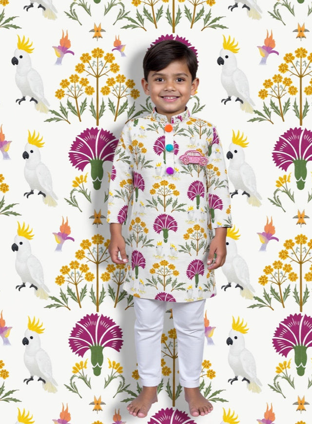Sultan 2-Piece Sherwani Set - White and multi-coloured orchid
