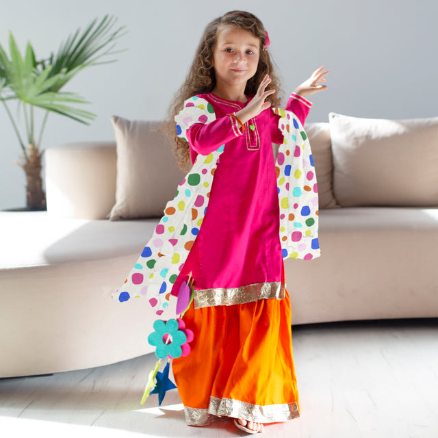 Marigold Sharara Set with Multicoloured Polka Dots Printed Dupatta
