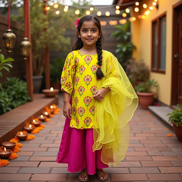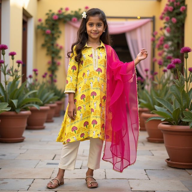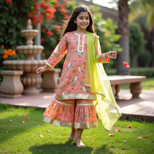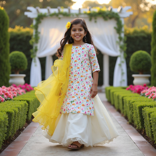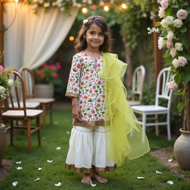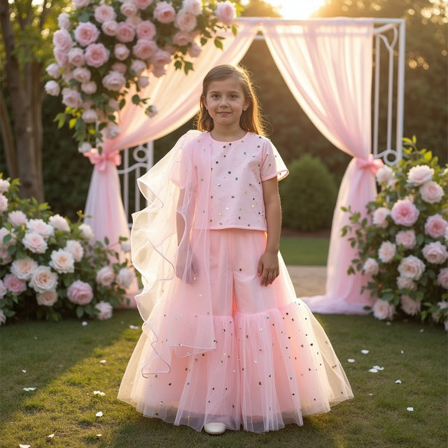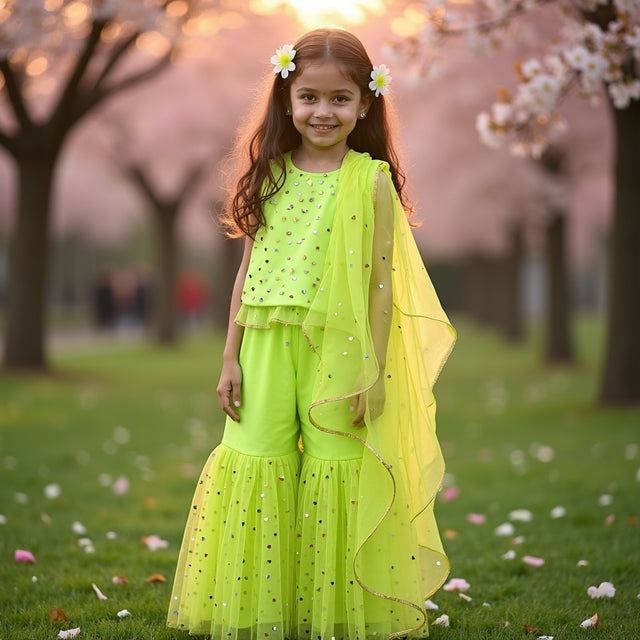 Marigold Sharara Set with Multicoloured Hearts Printed Dupatta