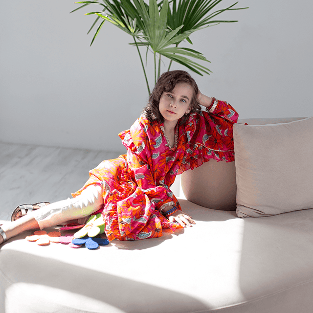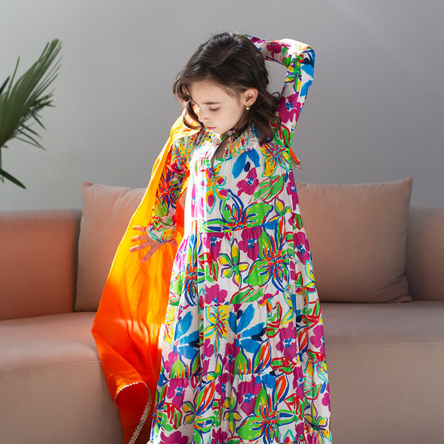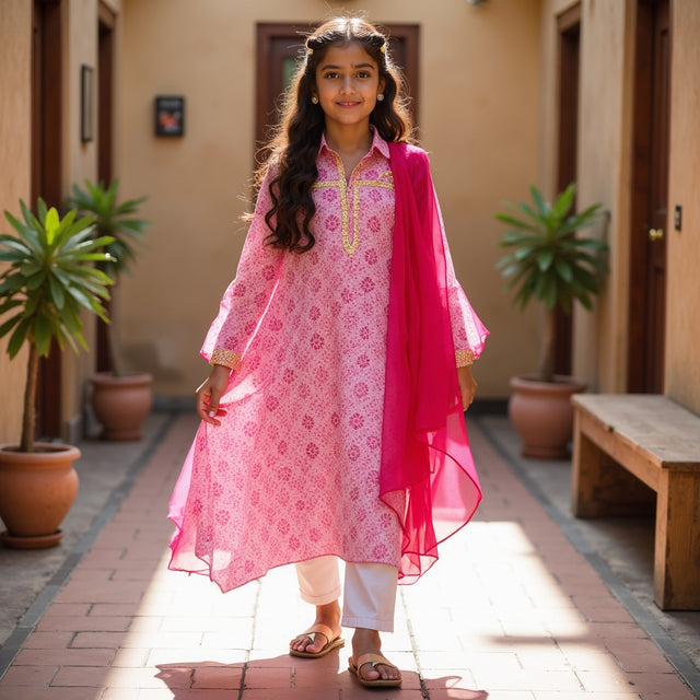 Raat Ki Rani Collared Anarkali - Pink and orange camellia