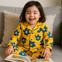 Yellow Blue Flower Pajama Set - Night Wear