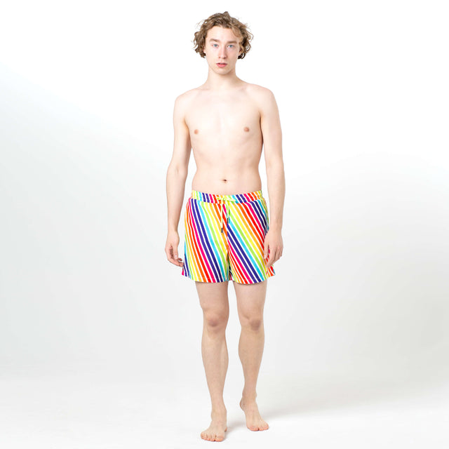 Multicolored Splashes and Cherries, Red Stripes Reversible Flipout Shorts