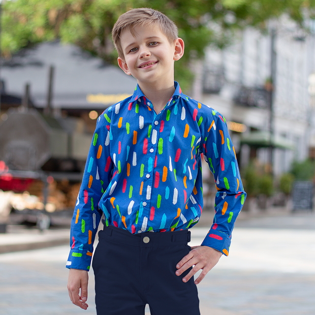 • Navy and Multi-Coloured Splash- Classique Shirt